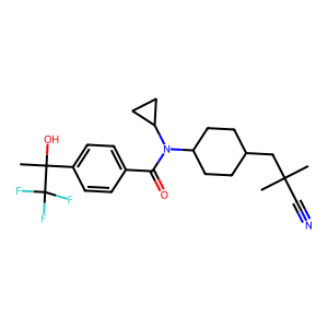 | SMILES | CC(C)(CC1CCC(CC1)N(C2CC2)C(=O)C3=CC=C(C=C3)C(C)(C(F)(F)F)O)C#N |